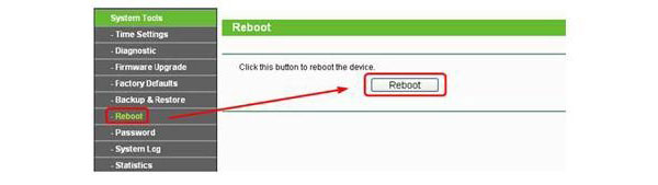 У меню «System Tools» вибираємо виберіть розділ "Reboot» і натискаємо кнопку «Reboot» для перезавантаження пристрою.